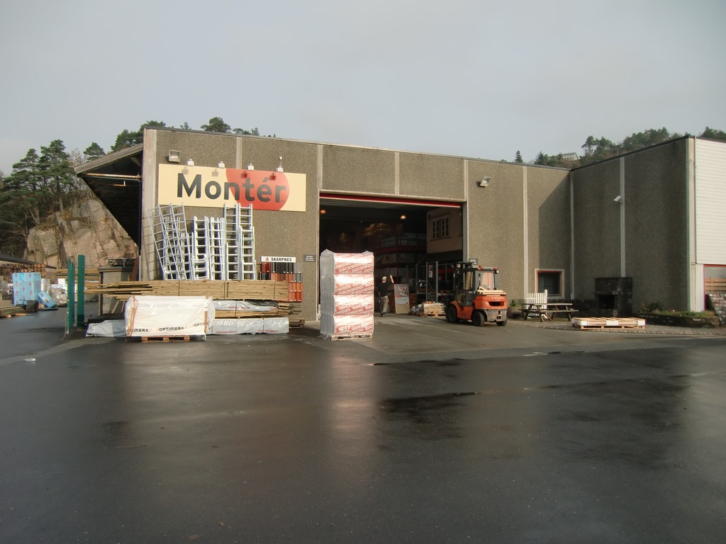 Bygget ligger på Gismyrøya i Mandal. Bygget består av en kombinasjon av lager / butikk og kontorer. Bygget er i sin helhet utleid til Montér.